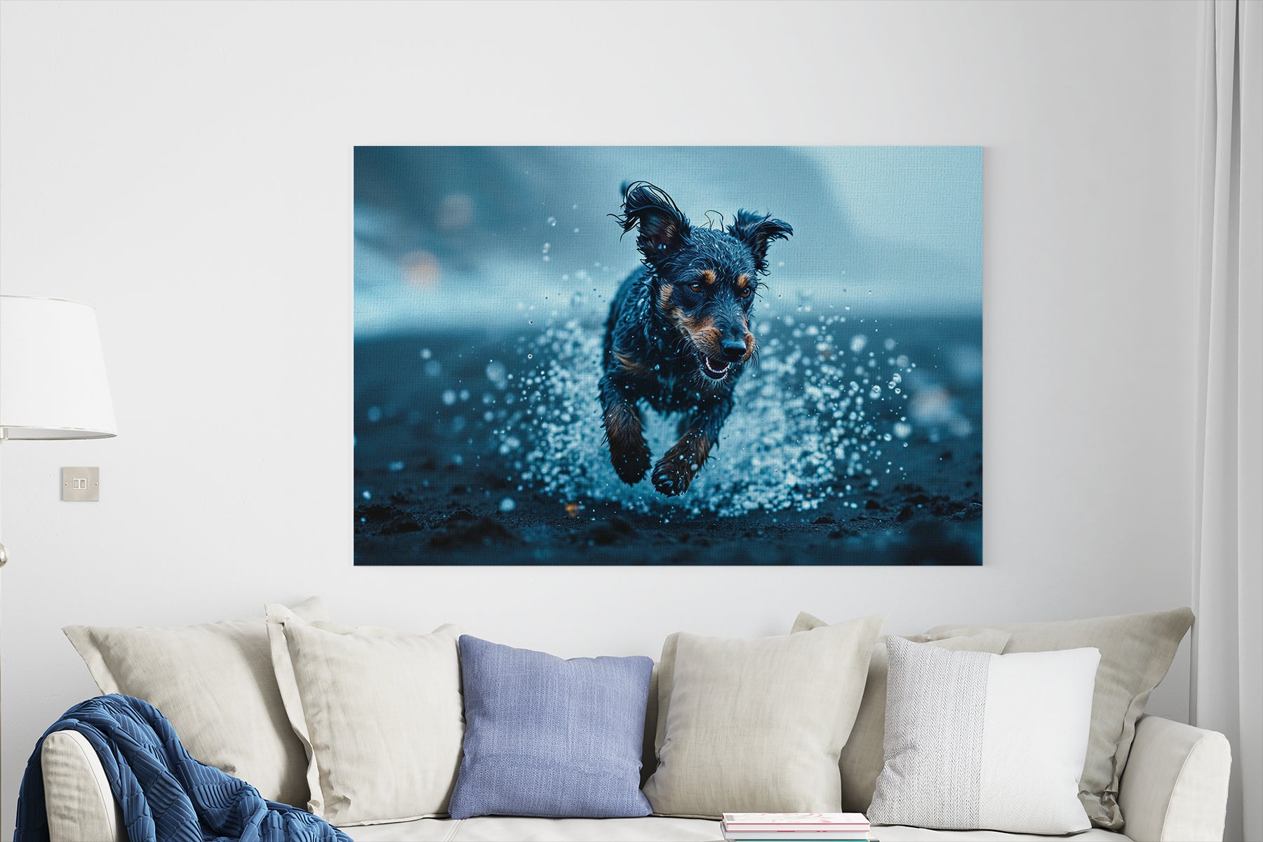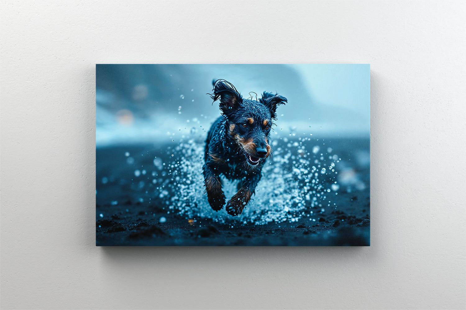 Tablou Canvas - Catel pe plaja cu nisip negru