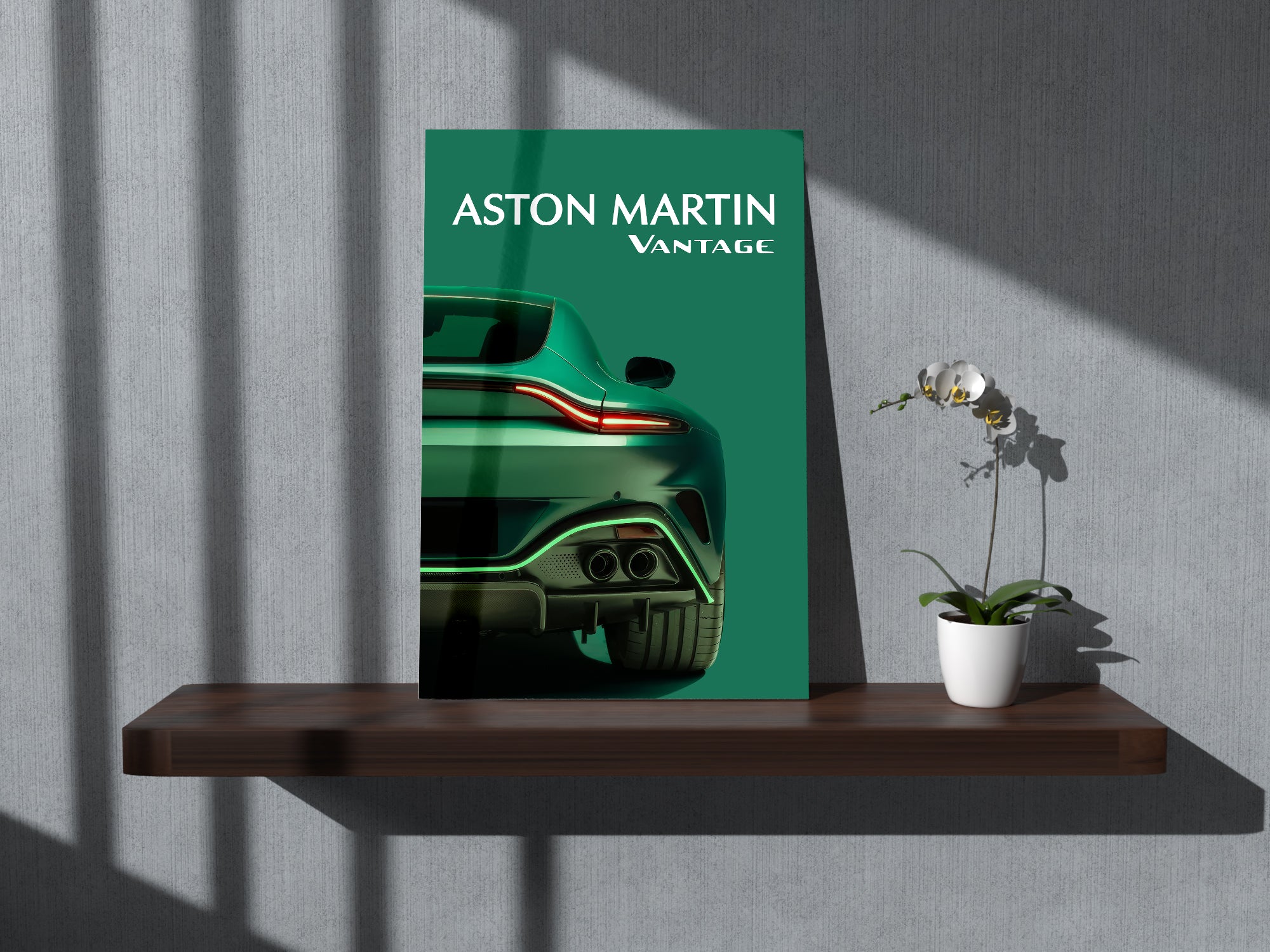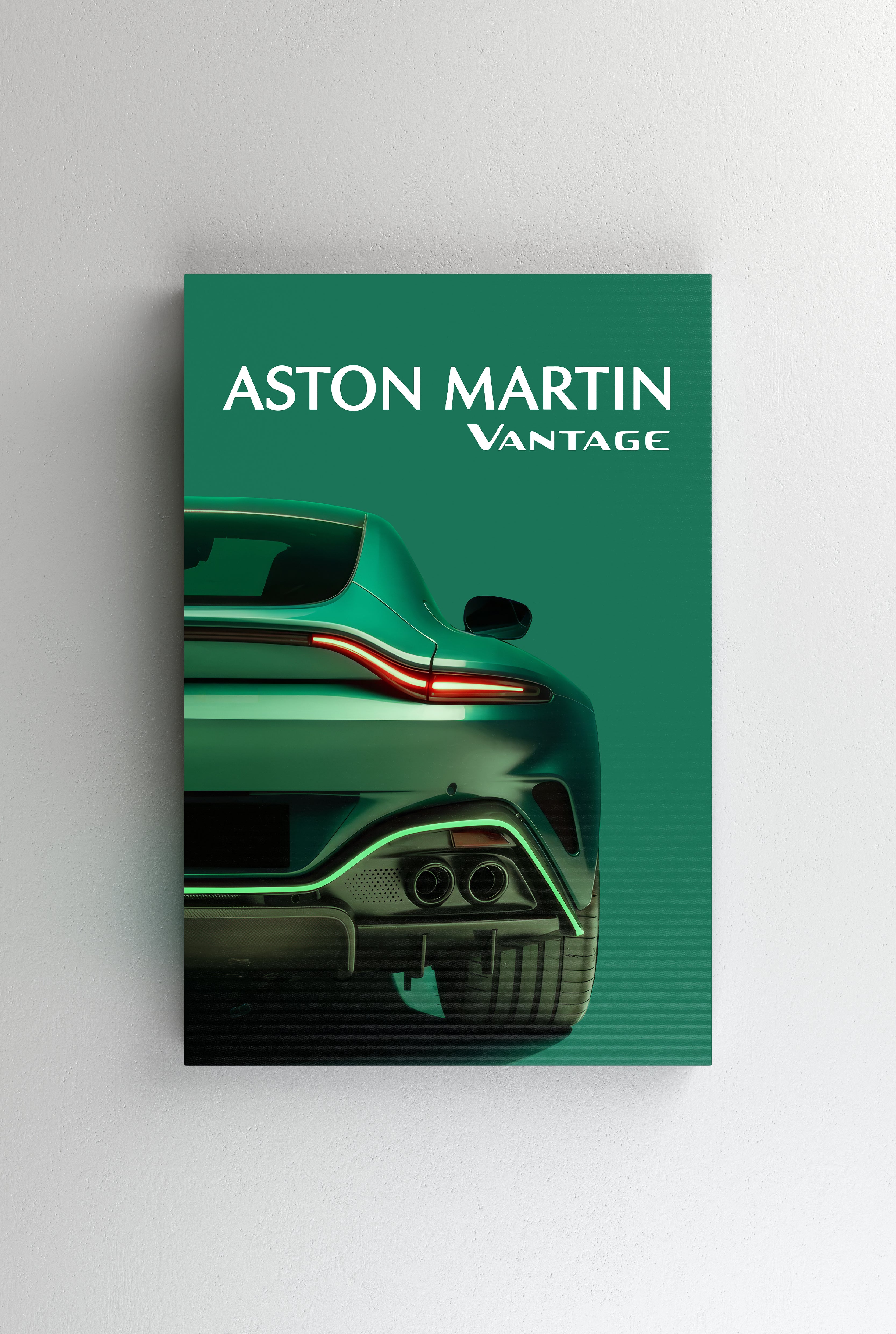 Aston Martin Vantage - Poster este un tablou canvas realizat din pânză de bumbac 100%, imprimată cu cerneluri pe bază de latex, înrămată pe un cadru din lemn natural executat manual